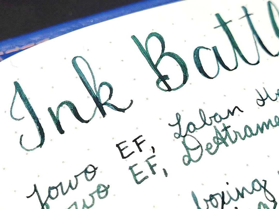 The point of the battle is to choose a favorite color. I use a pair of similar inks in pens with the same nib, then test them out to see which I like better.