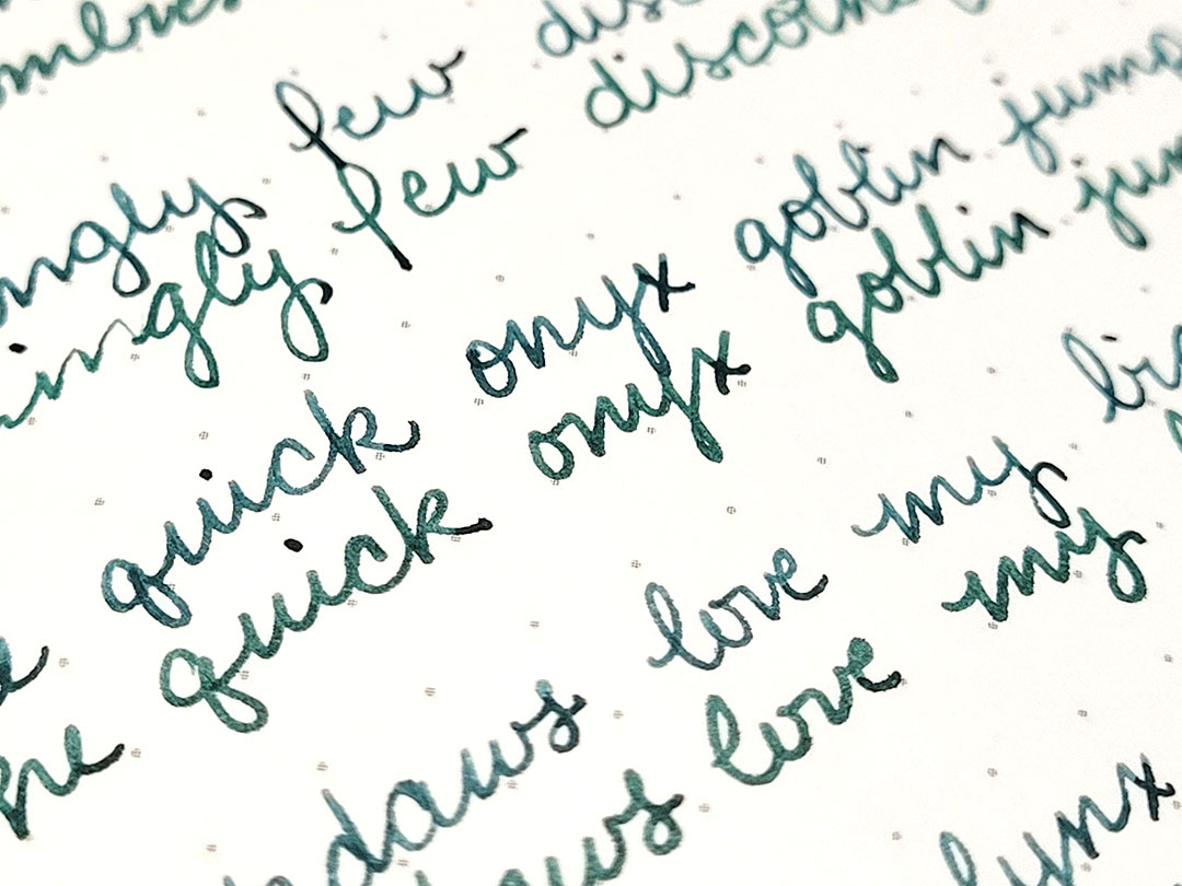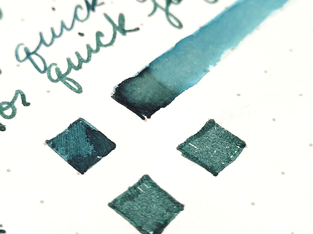 While the difference between these inks isn’t very noticeable in the writing, it’s obvious in the scribble section. Hera is darker and more blue. Document Dark Green is almost completely waterproof, as the document series is advertised to be.